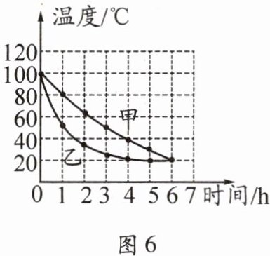 2. 甲、乙两个保温杯装有初温相同、质量相等的同种液体,在恒温的室内静置两杯液体,两杯液体的温度 - 时间图像如图6所示。下列说法正确的是 (