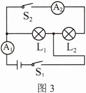 )A.只闭合$S_1$时$,L_2$发光、$L_1$不发光$,A_2$测$L_2$电流 B.只闭合$S_2$时$,L_1$发光、$L_2$不发光$,A_1$测$L_1$电流 C.闭合$S_1、$$S_2$时$,L_1、$$L_2$并联$,A_2$测$L_2$电流 D.闭合$S_1、$$S_2$时$,L_1、$$L_2$串联$,A_1、$$A_2$示数相等