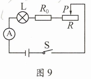 9. (2023·泰州)图9所示为模拟调光灯电路,其中电源电压恒为9 V,滑动变阻器R上标有“20 Ω 1 A”的字样,电流表选用0~0.6 A的量程。当将滑动变阻器的滑片P移至中点时,小灯泡L恰好正常发光。已知小灯泡L上标有“3 V 0.9 W”的字样(忽略温度对灯丝电阻的影响),为保证电路安全,下列结论正确的是(