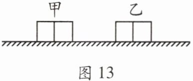 3. 如图13所示,粗糙的水平桌面上有两个相同的磁体甲和乙,它们保持静止且彼此有相互作用力。关于甲、乙两个磁体的磁极和它们的受力情况,下列分析正确的是(