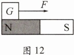 2. 如图12所示,重为G的小铁块在水平力F的作用下,沿条形磁铁的表面从N极匀速滑动到S极。下列说法不正确的是(