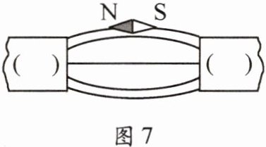 11. (2024·福州)请根据如图7所示小磁针静止时的指向,用箭头标出小磁针下方四条磁感线的方向,同时在括号内用“N”或“S”标出磁感线左侧和右侧的磁极名称。