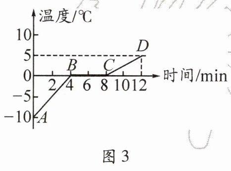 5. 图3所示是小李在标准大气压下探究某物质熔化规律时得到的物质温度随时间变化的图像。由图像可知,该物质在第4 min时的内能