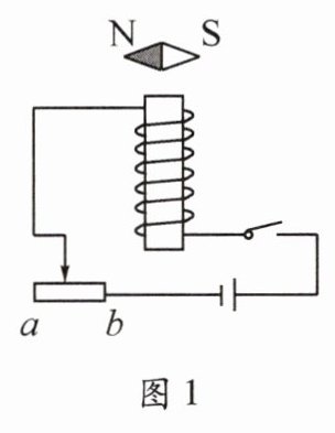 1. (2024·南昌)如图1所示,小磁针在纸面上能自由转动。闭合开关后,小磁针将沿