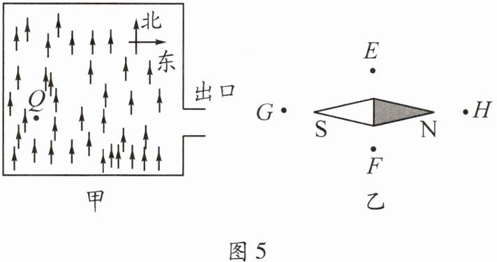 7. 如图5甲所示为一森林俯视图,某探险小组进入森林后在Q处迷失方向。为了走出森林,小组成员借助指南针来辨别方向,指南针的指向如图5乙所示,那么他们正确的前进方向应是沿着指南针所在位置的(