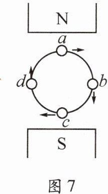 1. (2024·广陵)图7所示是闭合电路的一部分导体在两磁极间运动一周的情形,图中小圆圈“○”代表导体的横截面,箭头表示导体的运动方向。下列说法正确的是(
