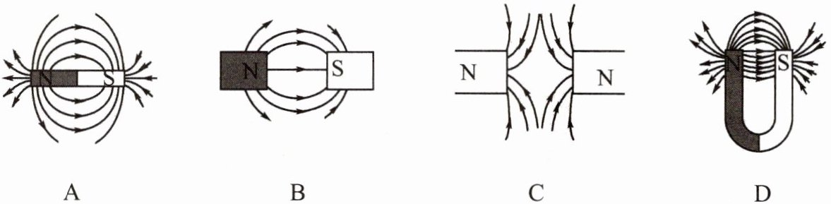 )A.磁场是一种真实存在的物质B.磁感线是磁体周围真实存在的曲线C.条形磁体周围各处的磁性强弱均相同D.磁场方向由放入其中的小磁针决定