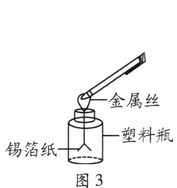 4. (2023·广西)某兴趣小组用塑料瓶、锡箔纸、金属丝等物品制作了一个简易验电器。如图所示,小组同学将跟头发摩擦过的笔杆