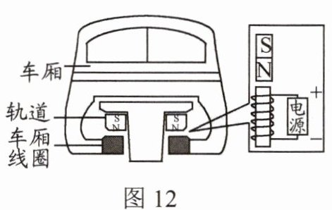 19.2020年6月21日,时速可达600km/h的高速磁悬浮试验样车在上海同济大学磁浮实验线上成功试跑,其工作原理如图12所示,该车能悬浮依据磁极间相互作用的规律是