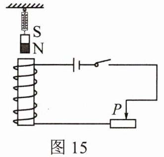 22.如图15所示的电路连接中,当开关闭合时,螺线管上端为