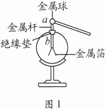 所示,用带负电的物体a去接触不带电的验电器的金属球b时,金属球b也带上负电。下列说法正确的是 (