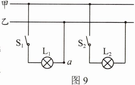 19. (2023•营口)家庭电路的部分电路图如图9所示(电路连接正确)。根据电路图可以判断甲、乙两根进户线中