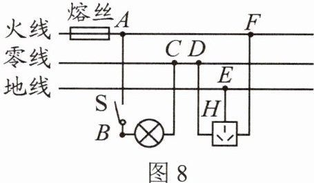 15. (多选)如图8所示是某家庭电路的一部分元件电路图,下列说法中正确的是(