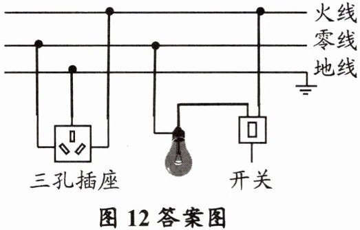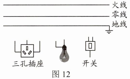 23. 如图12所示,根据安全用电的要求,完成家庭电路连接。