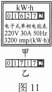 (选填“火”“零”或“地”)线相连,防止发生触电事故。(2)某家庭某月初电能表的示数如图11中甲所示,月底表盘示数如图11中乙所示,他所在地区每度电的电费是0.5元,则本月他家应缴纳电费45