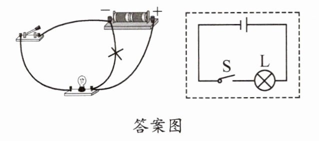 17. 如图所示是某同学连接的实物电路,其中一根导线连接错误。请在接错的导线上画“×”,然后用笔画线代替导线画出正确的连线,并在右边的虚线方框内画出对应的电路图。