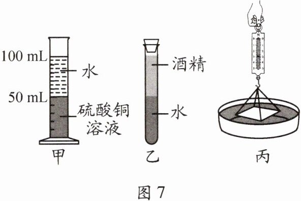 对实验的影响。(2)如图7乙所示,先后将50 mL水和50 mL酒精倒入玻璃管并做好标记,然后用塞子堵住管口,反复翻转玻璃管几次,可发现水和酒精的总体积