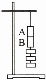 (1)如图8所示,老师把合在一起的铅块竖直悬挂在铁架台上,然后在铅块下面悬吊多个钩码,两铅块仍未分离,此现象说明
