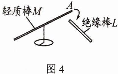 9. 如图4所示,轻质棒M放在绝缘支架上,将与毛皮摩擦后带上负电的绝缘棒L靠近M的A端时,A端被L吸引,则(