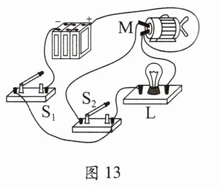 2. 将灯泡L和小电动机M接在如图13所示的电路中,则下列说法正确的是 (