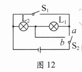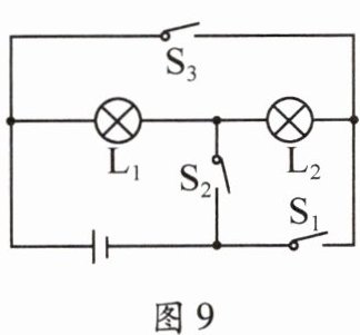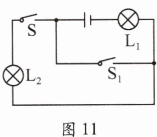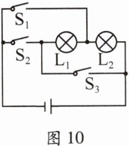 11. (2024·泉州)如图10所示的电路,要使L₁、L₂两灯组成并联电路,开关的断开与闭合情况应是 (