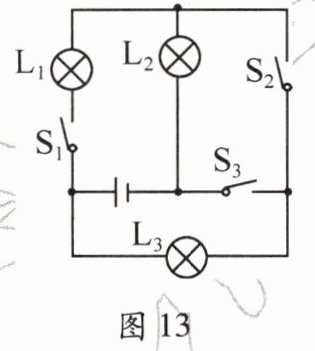 14. (2024·乐至)关于如图13所示的电路,下列说法正确的是 (