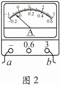 3. 小明使导线a、b分别与标有“-”和“3”的接线柱相连时,电流表指针的偏转情况如图所示,此时电流是从导线