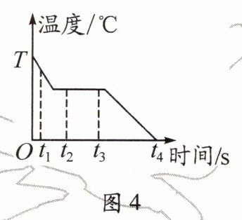 5. 图4所示是某物质由液态变为固态过程中温度随时间变化的图像。在t₄时刻,物体的内能