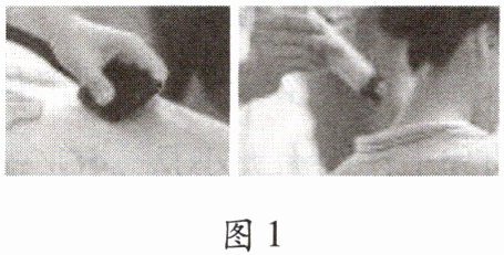 所示是我国古老的医疗技法刮痧和艾灸。当刮痧板在身体上刮动时,身体会感觉到热,这是通过