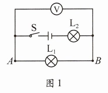 (选填“L₁”“L₂”或“电源”)两端的电压,通过L₁的电流方向为从A到B