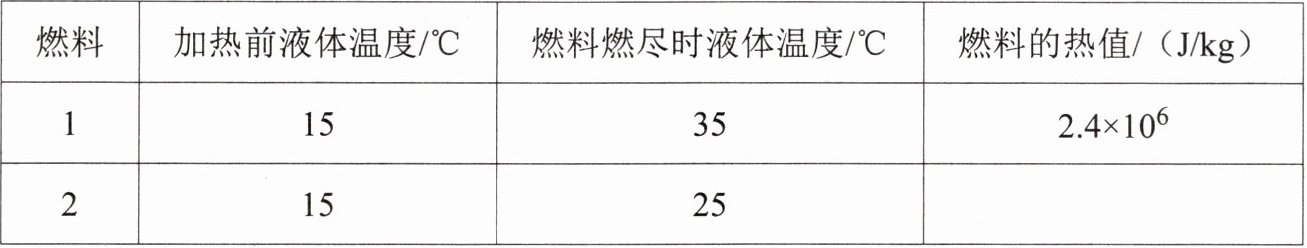 (2)在研究不同燃料热值实验时,记录数据如下表: