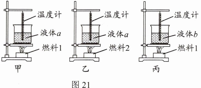 29. 如图所示,甲、乙、丙三图中装置完全相同。燃料的质量都是10g,烧杯内的液体质量和初温相同。