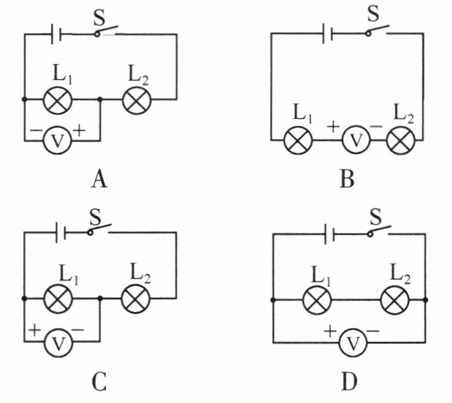 9. (2024·海南)要用电压表测量灯泡L₁两端的电压,下列电路接法正确的是(