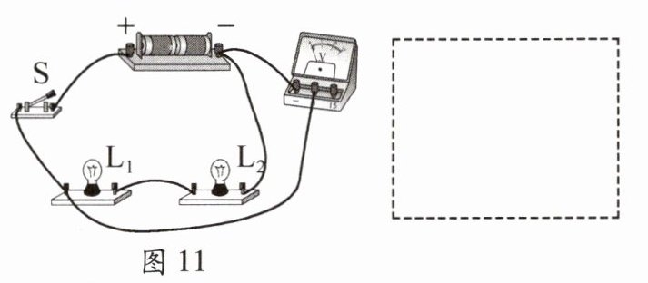 15. 图11所示是小晶所连的电路,她要测量小灯泡L₂两端的电压。