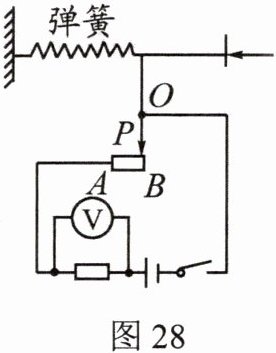 (4)按改进后的方案闭合开关,如果弹簧自然伸长时,滑片刚好在B端;当推动距离为30cm时(在弹性限度内)滑片刚好在A端。当电压表的示数为1.5V时,挡板被推动的距离为_____cm。