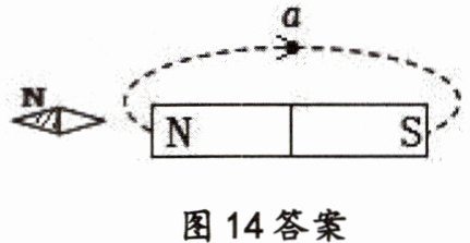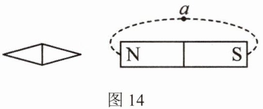 25. 在图14中标出静止在磁场中的小磁针的N极和a点的磁感线方向。_____