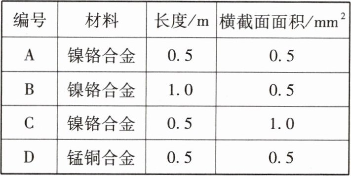 12.(2024·长沙)在探究影响导体电阻大小的因素时,某兴趣小组作出了如下猜想:①导体的电阻与导体的长度有关;②导体的电阻与导体的横截面积有关;③导体的电阻与导体的材料有关。小组同学连接的电路如图9所示,实验室提供了4根电阻丝,其规格、材料如下表。