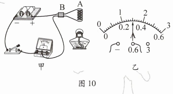 (1)闭合开关,电流表的示数如图10乙所示,其示数为