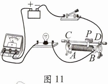 12. 某班同学做“用滑动变阻器改变电流”实验,设计的电路如图11所示。