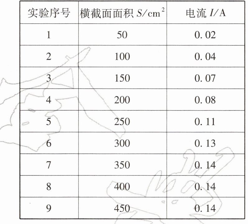 (2)分析上表中的数据,可初步得出结论:保持其他条件不变,横截面面积增大时,食盐水的导电性