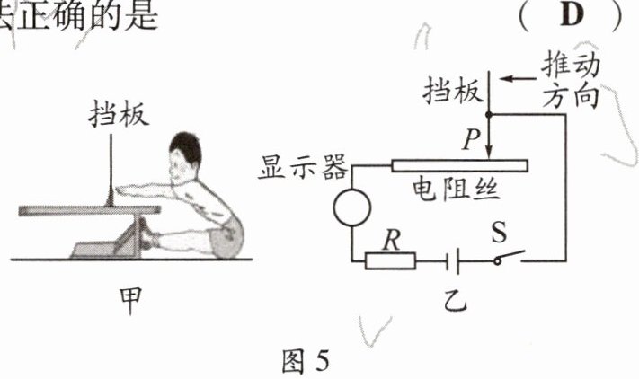 近但柔韧性差异较大的同学先后推动挡板进行测量,“显示器”示数的大小能够反映其身体柔韧性的好与差。下列说法正确的是 (D