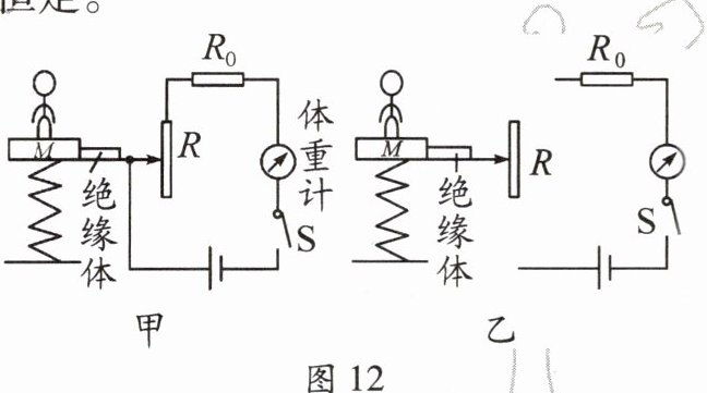 (2)小华认为图12甲所示体重计的设计不合理,其原因是