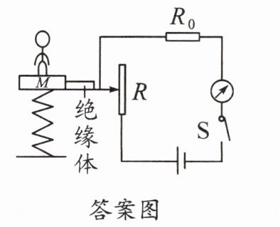 3. 图12所示是一种测量体重的电子体重计。秤盘M通过绝缘体与一金属杆相连,R相当于滑动变阻器,由体重计仪表指针所指的刻度就可以知道人的体重大小,电源电压恒定。