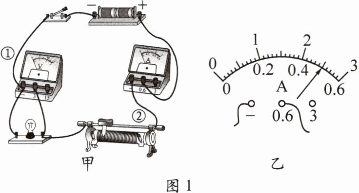 (选填“①”或“②”)。(2)改正电路后,小柯调节滑动变阻器的滑片使小灯泡正常发光,此时电流表的示数如图1乙所示,则小灯泡正常发光时的电阻是