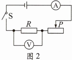 2. 图2所示是做“伏安法测定值电阻”实验的电路图,其中R为待测电阻,阻值约为5 Ω。实验器材有:滑动变阻器(规格为“10 Ω 2 A”)、电压表(量程分别为0~3 V、0~15 V)、电流表(量程分别为0~0.6 A、0~3 A)、电源(由3节新干电池串联而成)。为了在测量中能较准确地读数(指针最好偏过中间刻度线),电压表应选