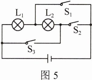 )A. 只闭合$S_2,L_1、$$L_2$串联B. 同时闭合$S_1、$$S_3,L_1、$$L_2$并联C. 同时闭合$S_1、$$S_2,L_1$被短接,只有$L_2$接入电路D. 同时闭合$S_2、$$S_3,$就会造成电源短路