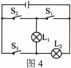 10.如图4所示的电路图中,要使灯泡$L_1$和$L_2$组成并联电路,应该是(