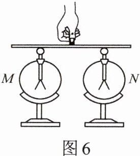 12.如图6所示,验电器M不带电、N带负电,用带有绝缘柄的金属棒将它们的金属球连接起来,发现验电器M的金属箔片张开,下列说法正确的是(