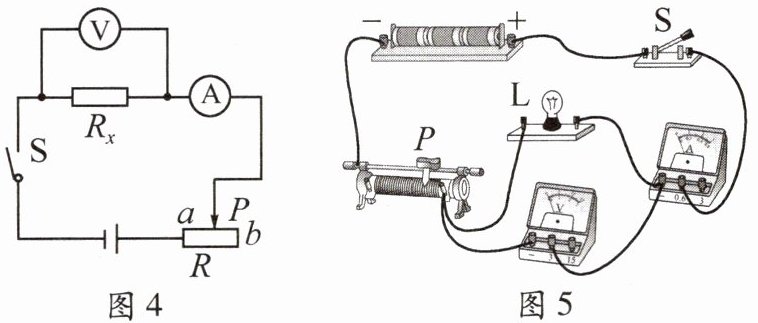 5. 在如图5所示的“伏安法”测电阻实验中,闭合开关S,小明发现电流表有示数,但示数较小,小灯泡不亮。接下来应进行的操作是 (