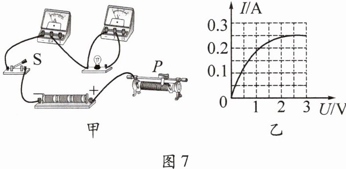 (1)请用笔画线代替导线,将图7甲中的实物电路连接完整。要求:向右移动滑动变阻器的滑片P时,小灯泡变亮。
